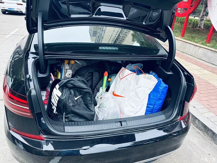 空间方面,帕萨特的车内空间没得说,B级车价格C级车的体验,后排坐着两大人一小孩,空间还是很宽敞,横向纵向距离都表现很不错,后排中间位置座椅比较硬适合小孩坐,有支撑。假如后排三个大人,中间坐的可能就不太舒服,因为地台中间也是隆起了一部分,脚肯定不好放。后备箱的空间也很大,而且很深,一家人出去自驾游,行李是完全够放的。