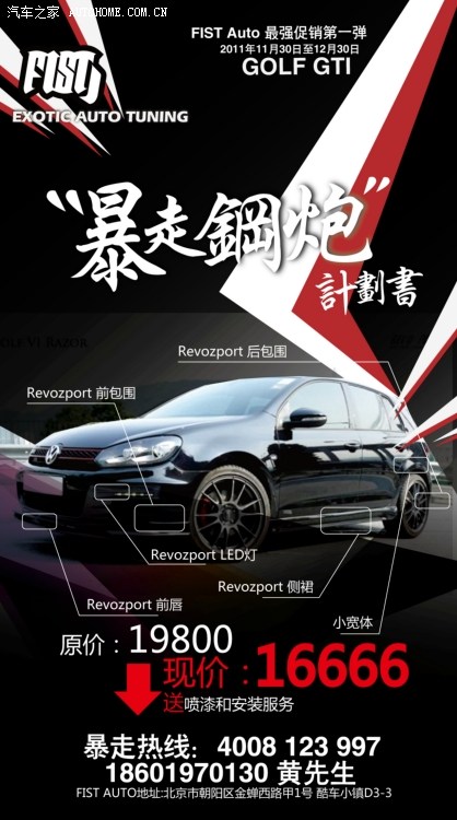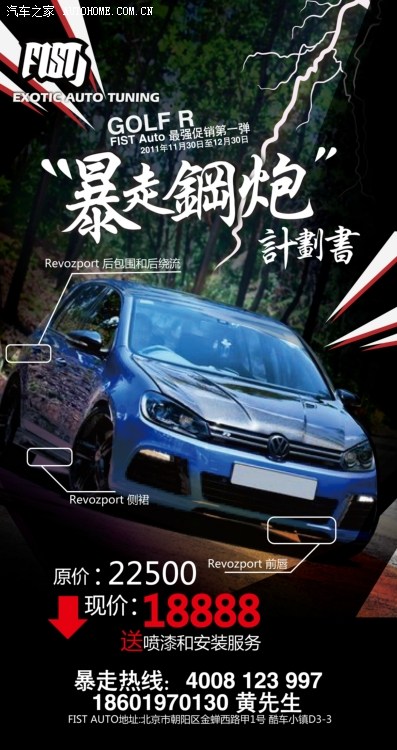 凡是在指定期限内来 FIST AUTO 定购Revozport外观套件的客户均可享受到年末促销团购价。配额有限!先到先得!活动详细内容如下: