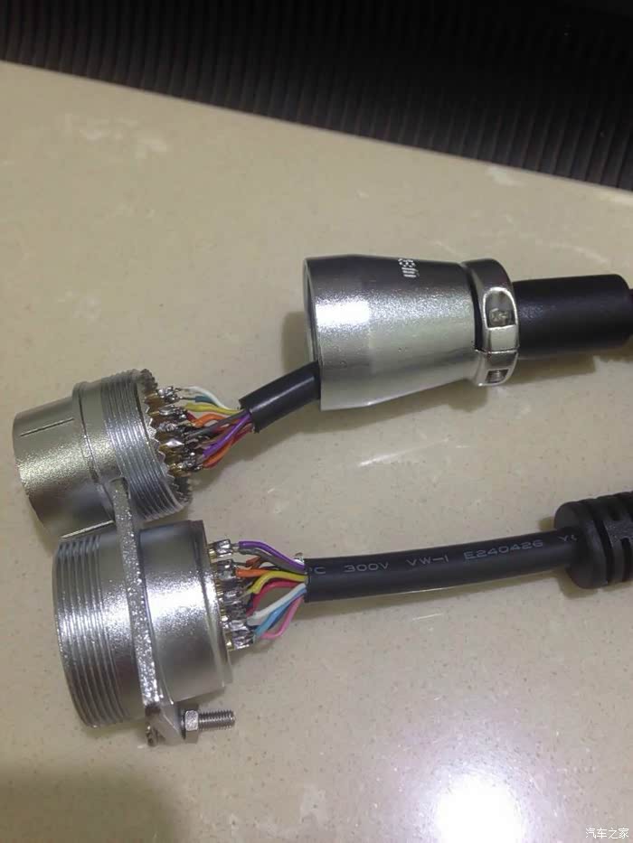 开始说直接把车上的OBD线剪了 焊到航空插头上 但是接头太密集了 怕短路 还是先在插头上焊好线 再拿去一根一根接 当然要用到万用表 对应接线