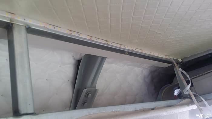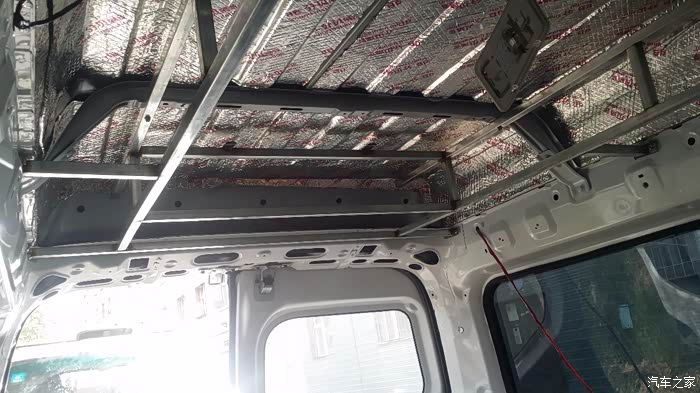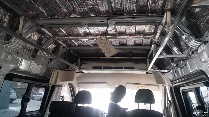 在上面做龙骨做吊柜,龙骨用方管焊接,但是连接车体部位用燕窝丝固定,尽量不要在车架上焊接,这是我认为的,不知道这样行不行,但是还是很牢固,