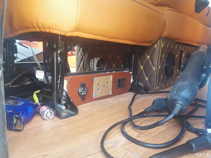 这个座位改装好的,可以看到流出了空间放2组电池的地方