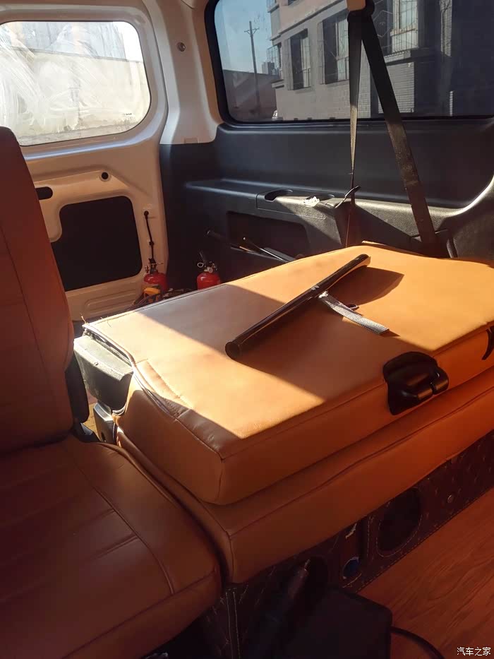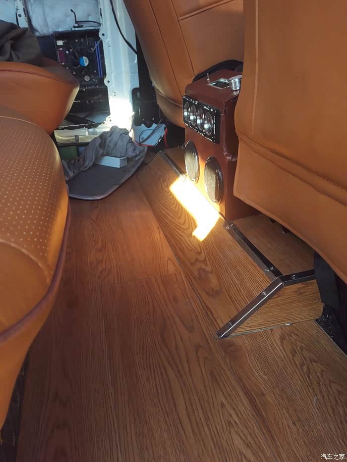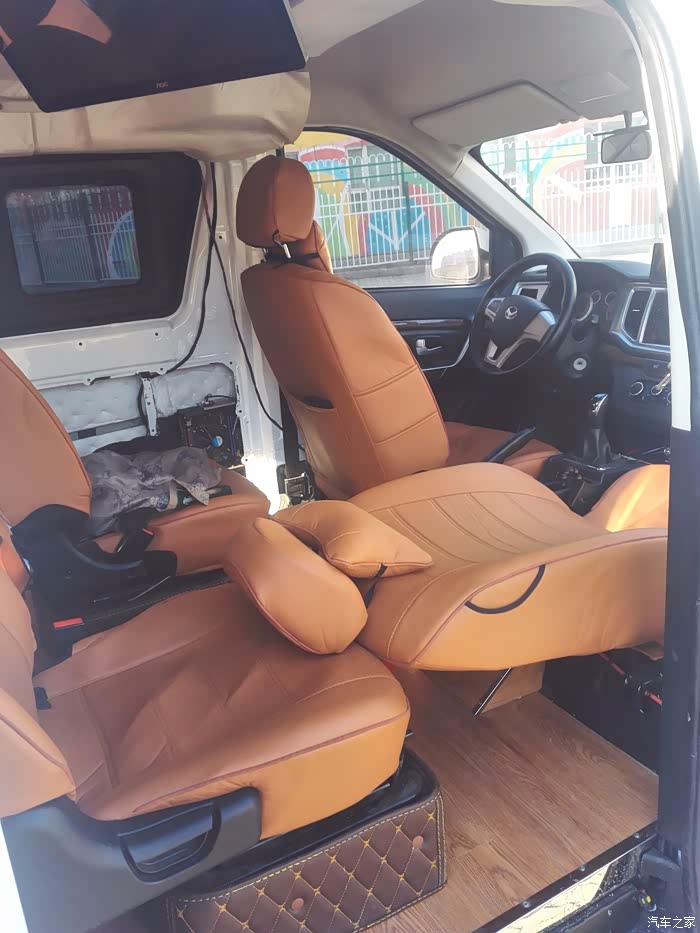 这个我记的拍了几张,但是手机里找不一了,我的三星NOTE3真的要扔了,二排座椅2个改成滑到带旋转,并且在座位下能安放电池进去,