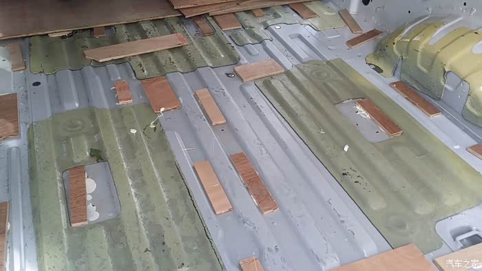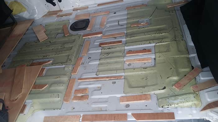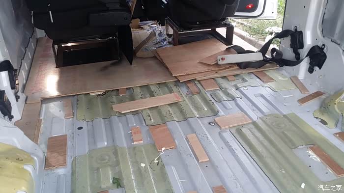 这是我拆了内饰才想起来拍的,这是准备铺地板找平,地板高低不平只能用板子把空隙大点的地方垫平