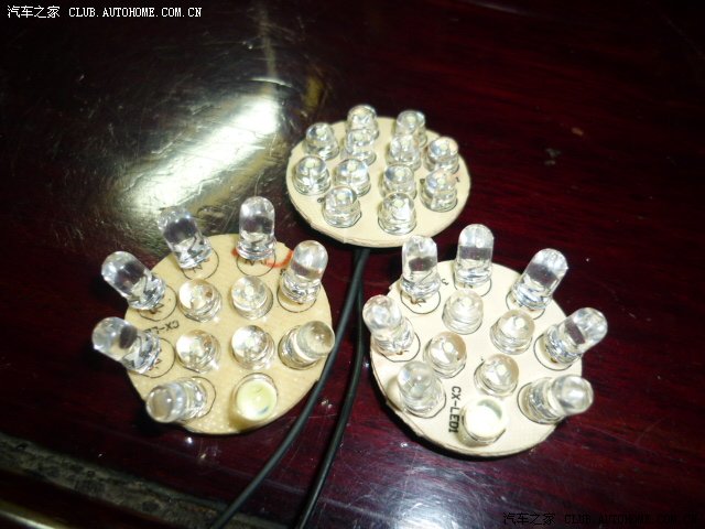 经过失败后我倍受打击,不再组装LED灯.决定用成品改装,直接接原车电源12V电压,产品带双开关,一个开关控制两排LED灯,颜色是白色,另一个开关控制一排LED灯,颜色是蓝色的,下面有效果图.
