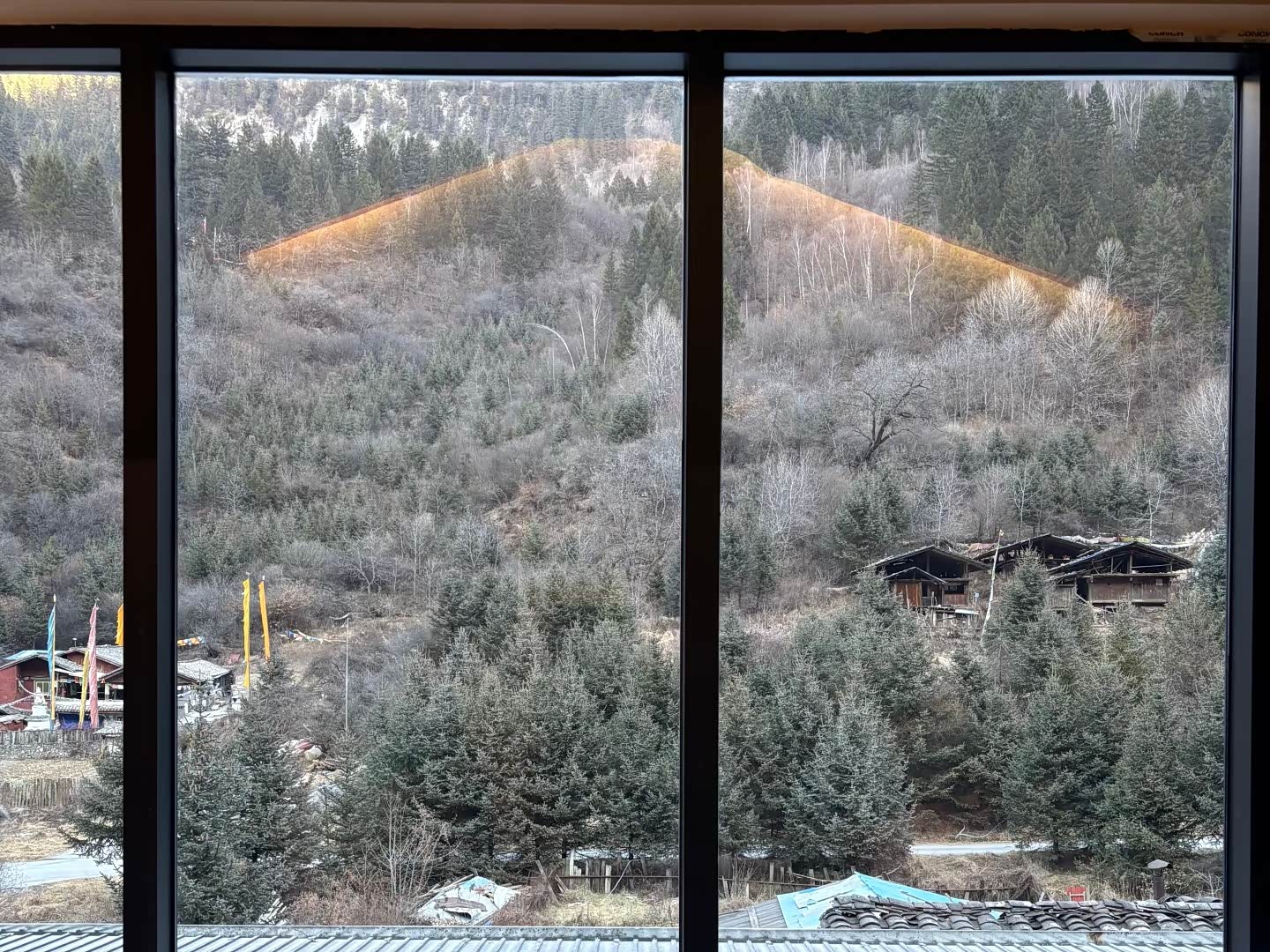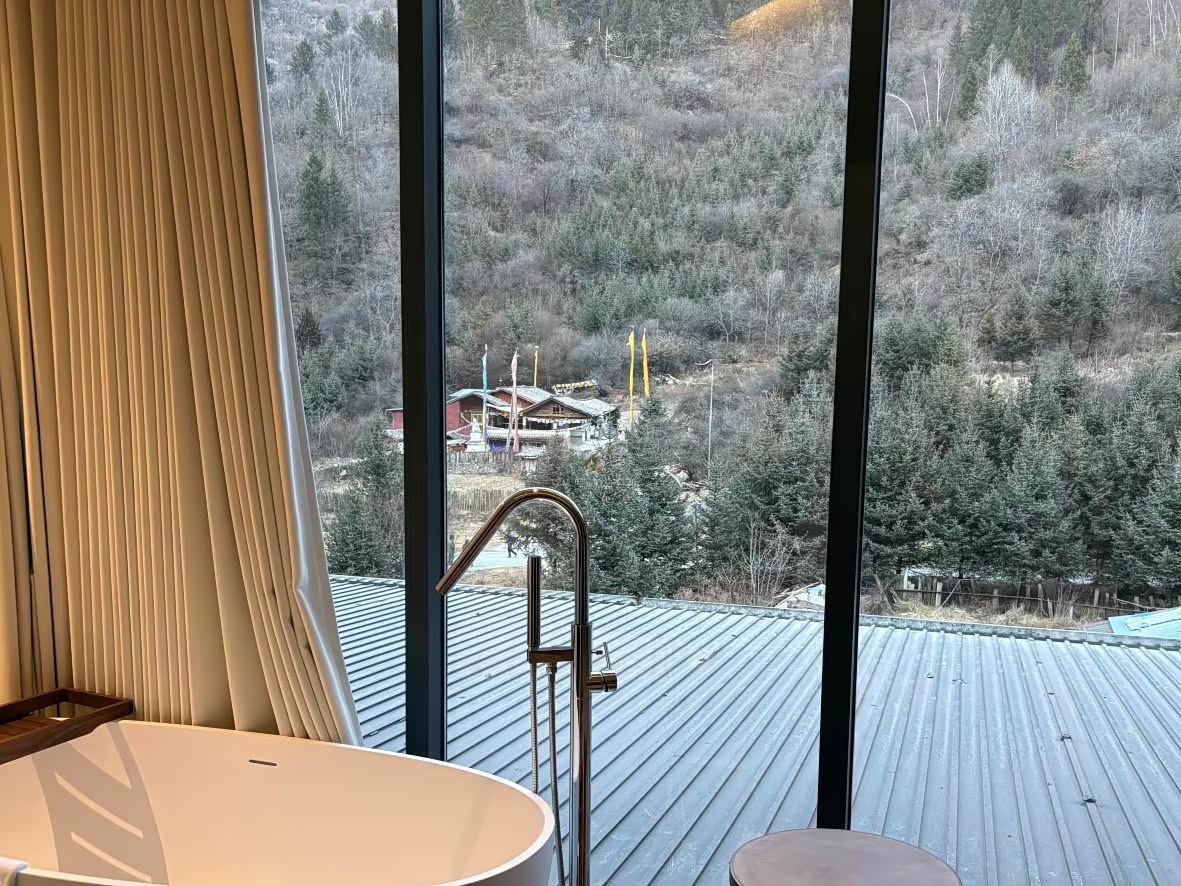 选沟口附近的民宿,图的是离景区近。我们住的那家藏式小院,老板端来的酥油茶冒着热气。1月是淡季,房价不贵,一晚200元,房间干净,窗外就是连绵的山。