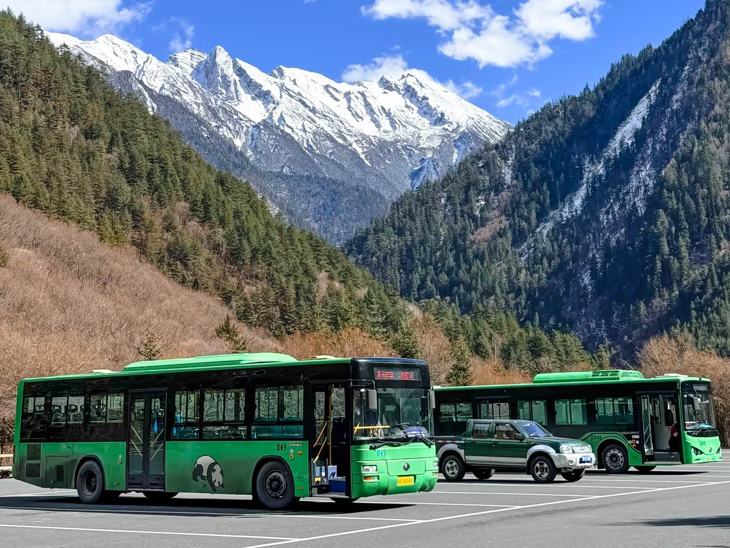 出黄龙九寨站时,一月的风带着凉意扑过来。提前在某猪买了去景区的大巴票,33.8元/人,车程约2小时。公路沿着岷江蜿蜒,两岸的山裸着赭红色的岩石,偶有几丛松柏绿得扎眼。快到景区时,司机指着远处的雪峰说:“那就是九寨沟的方向。”