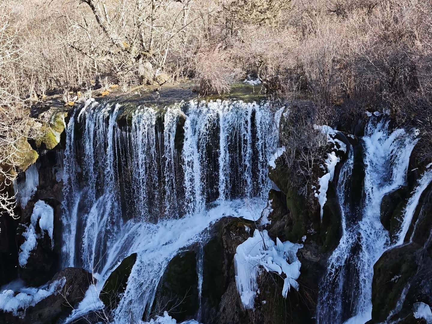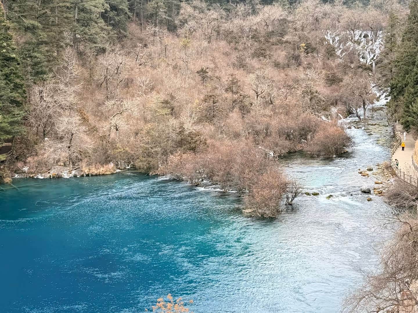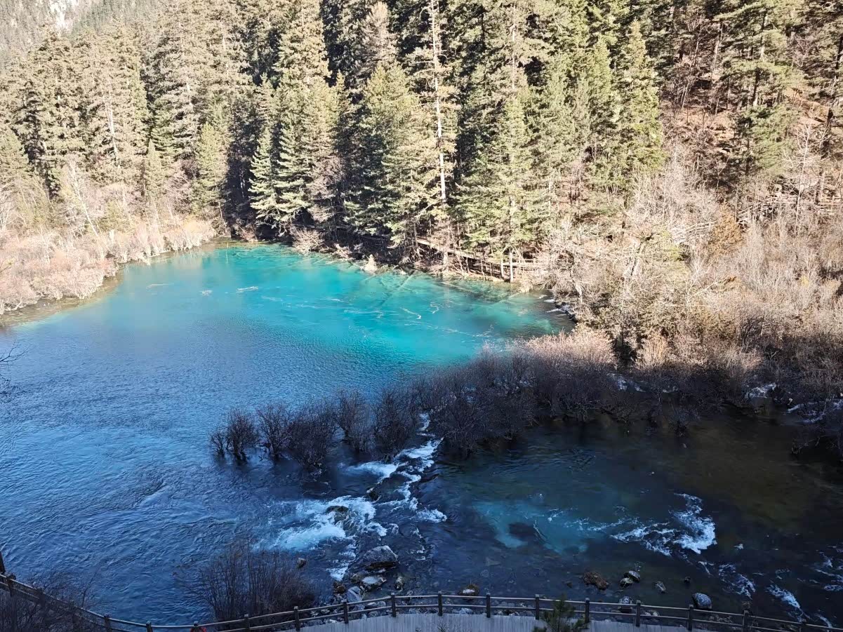 回程的高铁上,翻看着照片,忽然想起苏轼的“人间至味是清欢”。九寨沟的美,从不是浓墨重彩的,而是像一汪清泉,静静淌过心间。一月的它,少了些热闹,多了些清冷,却更显本真——冰是冰,水是水,山是山,在天地间自在成景。