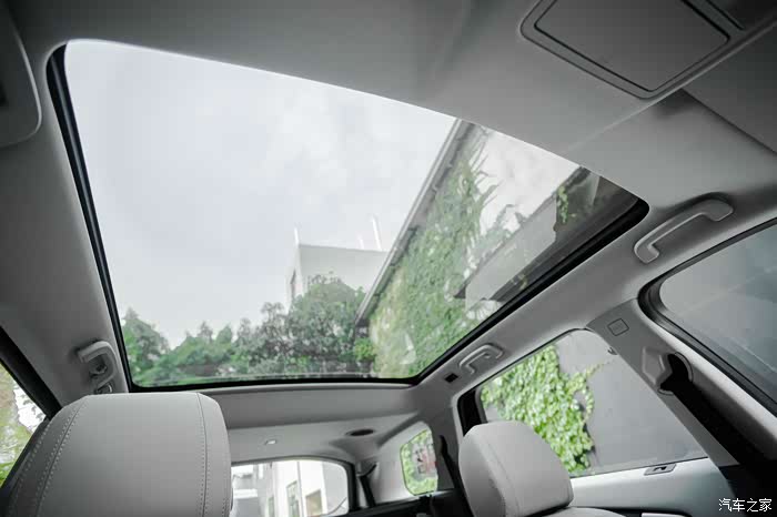 打开全景天窗后,使车内空间更为宽敞通透。车顶玻璃采用暗色调,让光线进入车内的同时,可将热浪阻隔在外。