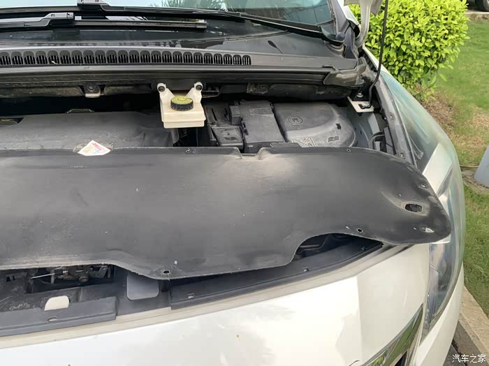 打开引擎盖,先拆隔音棉,必须全拆取下,不可拆部分掰开操作,会损坏材料。一共十个卡扣,如图拔出。