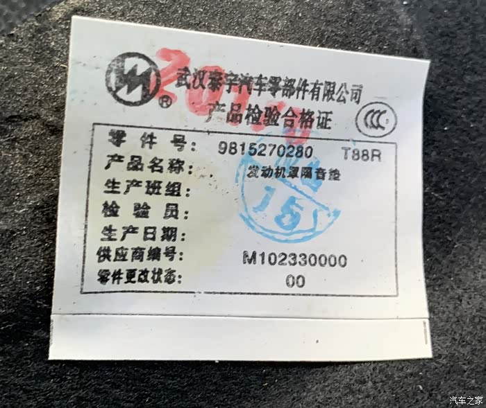 拆下的引擎盖隔热棉。