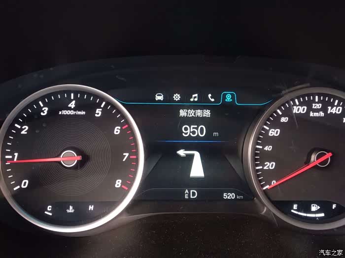 导航开始以后,行驶路线就会显示到仪表盘上,如下图。