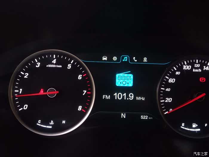 退出导航以后,打开收音机,仪表盘切换到音乐界面就会显示歌曲或是收音机内容了。