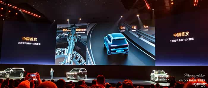 第四,中国新能源首发的三腔空悬+EDC的魔毯悬挂。光听名字,三腔空悬理应比市场主流的双腔空悬更强,毕竟通过三个气室,能实现高低、软硬、阻尼同时可调,适应更多路况场景;而且岚图泰山是世界前五使用了三腔空悬的车型,目前三腔空悬除了岚图泰山之外,只用于迈巴赫、保时捷、路虎揽胜等国际大牌的顶配车型;再加上具备道路预瞄功能的EDC魔毯悬挂,搭配前双叉臂后多连杆的全铝底盘,岚图泰山让岚图底盘的表现更上层楼。