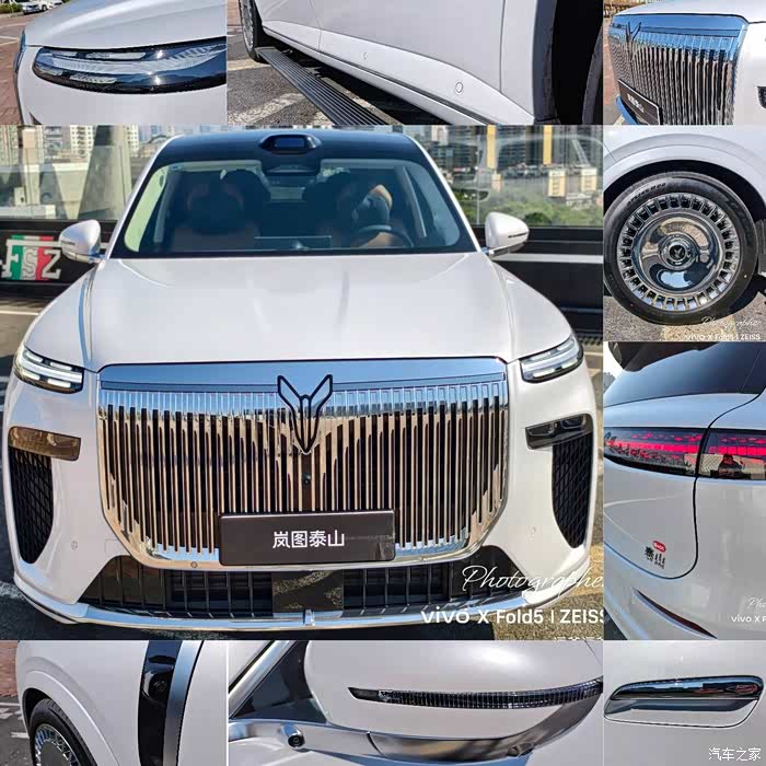 或许还有一个问题,为何选了白色?相信大部分车友都会额外加价1万选择双色车身,因为紫金或黑金双拼色会更凸显泰山的“尊&威”,尤其搭配大饼轮毂之后,搭配黑红内饰,观感妥妥百万豪车。而我之所以选择了白色的岚图泰山,其实只有一个原因——特别,没错,“特别少”的特别。当大家都选深色甚至双色的泰山时,白色就悄咪咪变成了“准限量”版啦……白色外观的泰山,气质完全不同于深色系,格外显大、更加纯粹。