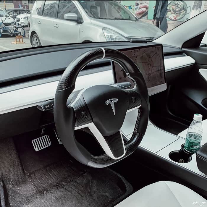 在广州增城工厂定制了方向盘,原厂饰盖喷成了白色,其它全部做了真碳纤维哑光,搭配平纹皮,手感超赞,这下效果和白内谐统一了。