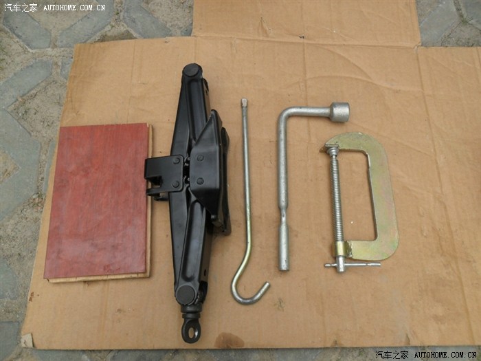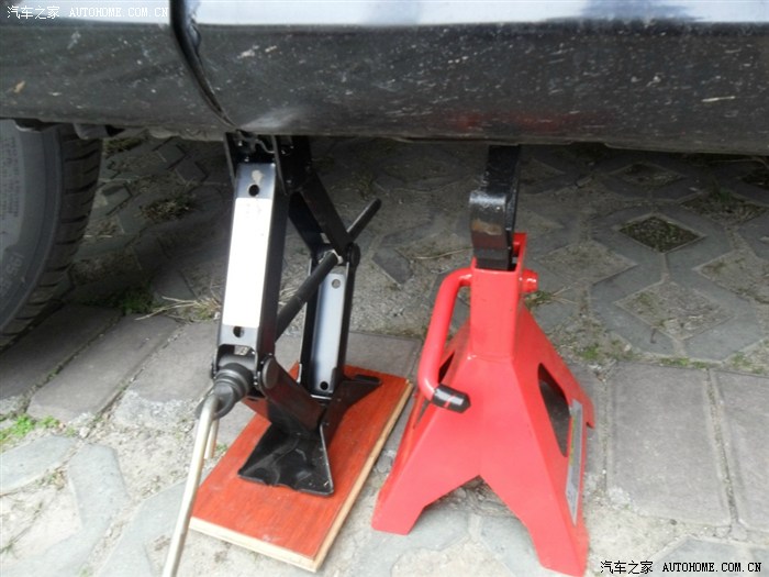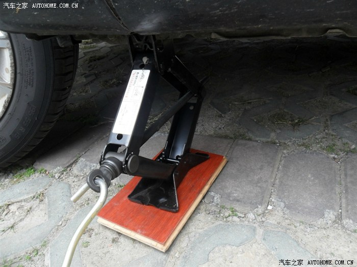 4、千斤顶上。下面放一块木板,更好发挥作用。
