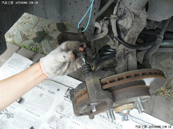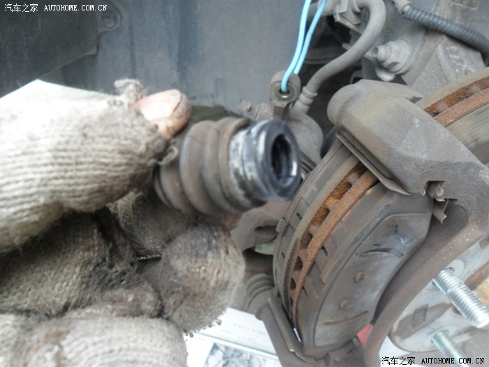 19、给导向销及防尘套涂上润滑剂,准备复原安装。请无视破了的手套,这是上次房子装修木工师傅留下来的,凑合着用用,呵呵