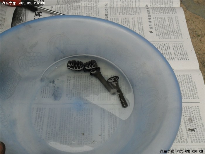 13、把导向销及防尘套放在柴油里浸泡10分钟左右。