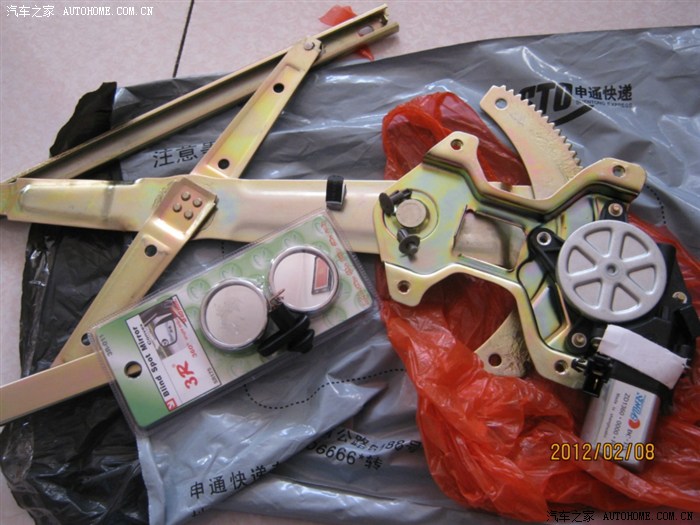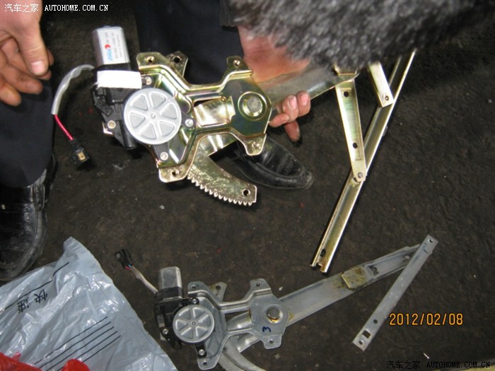 以上是第一次作业,自己动手的,发现两个问题:一是,升降器齿轮有脱扣的响声,车窗上不去。 二是,按了几次升窗按钮后,升降器干脆不工作了,摸下电机,发热了,估计烧了。 于是执行下一套方案,赶紧到就近的维修部去。维修师傅试了一下,那升降器电机又好用了,只是齿轮脱扣升不上去,师傅说,得换升降器了,要我到本市的配件商店去买配件。去配件商店一打听,没货!要的话,可以现发货,180米