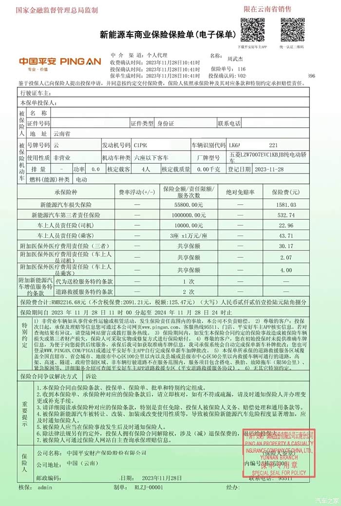 五菱缤果新车的保险分享