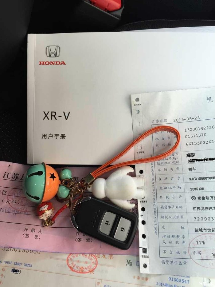 ,老板说去买XR-V吧,新出来的,性价比还算是可以的。所以,第二天去盐城的4S店去看了实体车,本来意愿是蓝色的,结果我妈咪说蓝色坚决不好看,不要。(因为阴天蓝色看起来很深),我还是觉得啊,女汉子可以开蓝色的,多帅气!