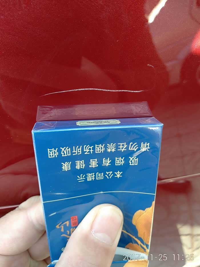 划痕位置在烟盒上面一点