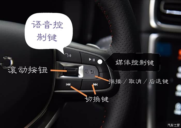 方向盘按键的讲解到此结束,下面着重讲解方向盘的操纵杆
