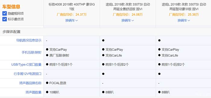 音响方面,4008采用的是法国国宝级FOCAL音响(有发烧友专门评测过),途观的我不清楚,大概率没有4008的好。