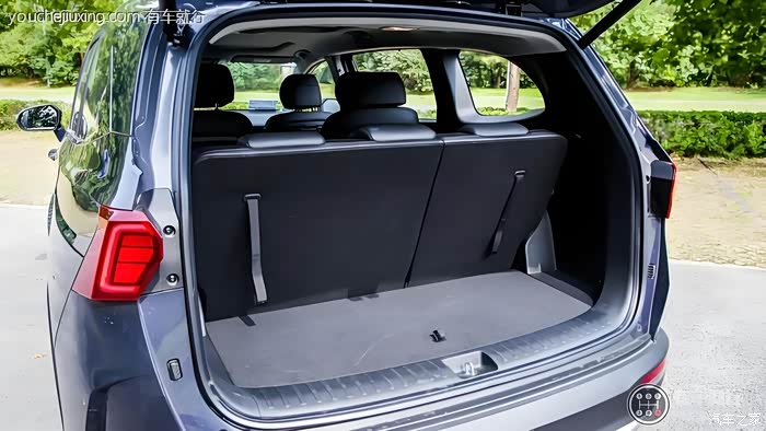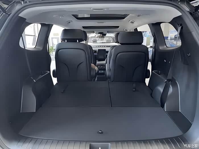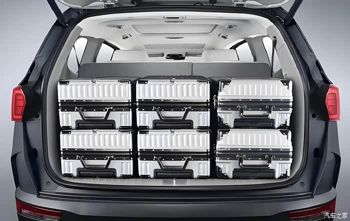 三排座椅放倒之后后备箱空间很大,足有707升,拉货都不成问题,那拉几个行李箱,更问题不大。