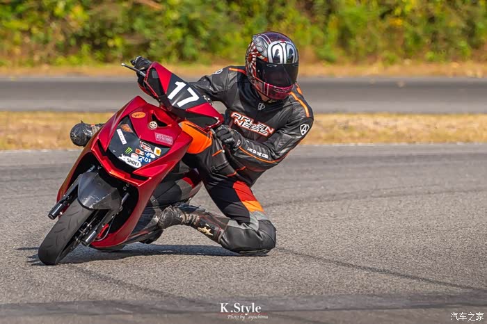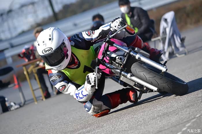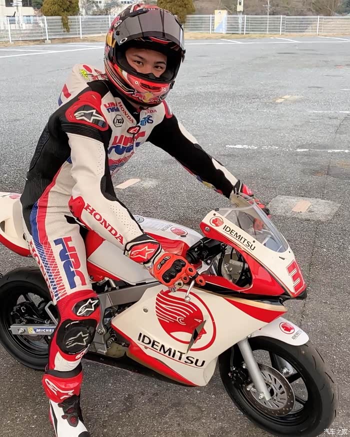 山中琉圣,moto3选手,虽然他的是NS50F,17英寸的全尺寸摩托车,但底子还是50cc的两冲微型,而且轮胎细中心高,更不容易…