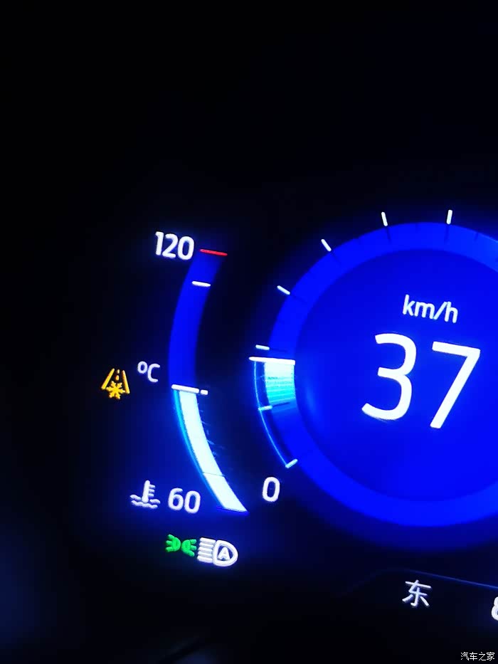 清晨翻过海拔5200M唐古拉山后,路面结冰。。。仪表显示黄色的雪花符号