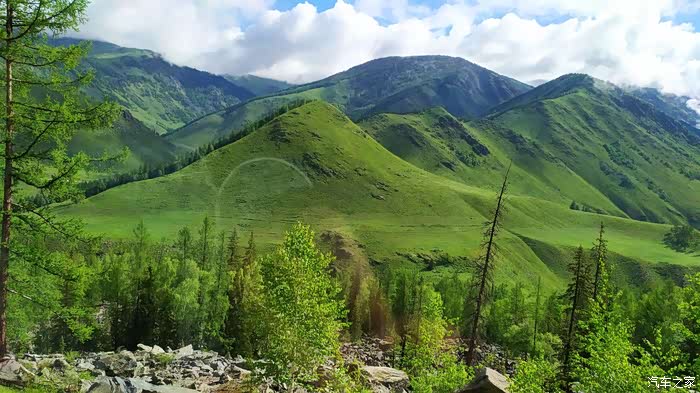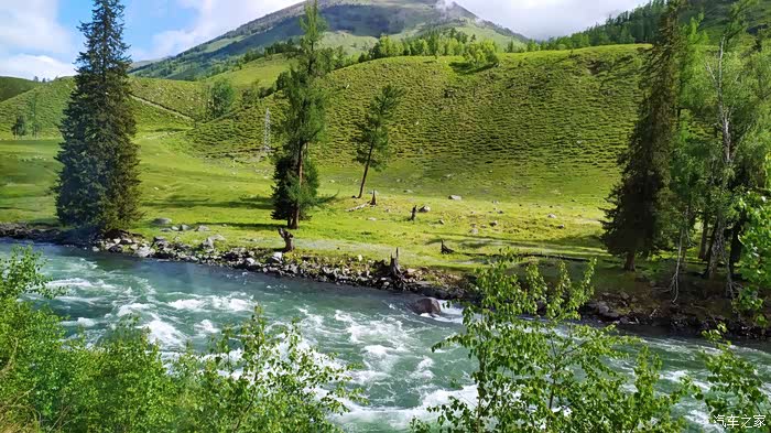 昨晚虽然赶了夜路,但今天在淅淅沥沥的雨声中很早就醒来,收拾停当,呼吸着清新的空气,沐浴着湿润的晨风,享受着满眼的嫩绿,置身梦幻般的童话世界,开始了真正意见上的旅游——畅游喀纳斯!