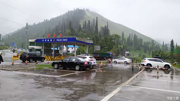 下午2点半告别喀纳斯,原路回到布尔津,在快接近县城时,突然乌云密布,转眼之间下起了倾盆大雨,道路上随即一片水雾,瞬间汪洋成河,硕大的雨点掉落在汉兰达车身上砰砰作响,像要把车顶击穿一样!!我把雨刮器调到最快档,依然看不清前方的路!我知道我又遭遇到暴雨的考验了,没办法只能紧握方向盘、全神贯注蠕行前进!令人惊奇的是前面不知何时突然出现了警车,隐约可见开启了雾灯双闪拉响着警报,身后引领着一长串大巴、轿车、皮卡、越野车等各式车辆,以每小时不到5公里的速度往前,我自然而然地加入了警车引领的队伍,悬着的心再次踏实起来,打心底佩服这里的交警疏通道路的响应速度!这么大的暴雨对我来讲第一次遇到,但是对人家而言,可能早已司空见惯,所以可能应急方案早就完备,因此第一时间交警就出现了!!试想下如果没有交警引领,面对这样的天气,第一次走这样的路,会是怎样的局面?(我是不是太矫情了?好像啥事都没经历过似的?……)