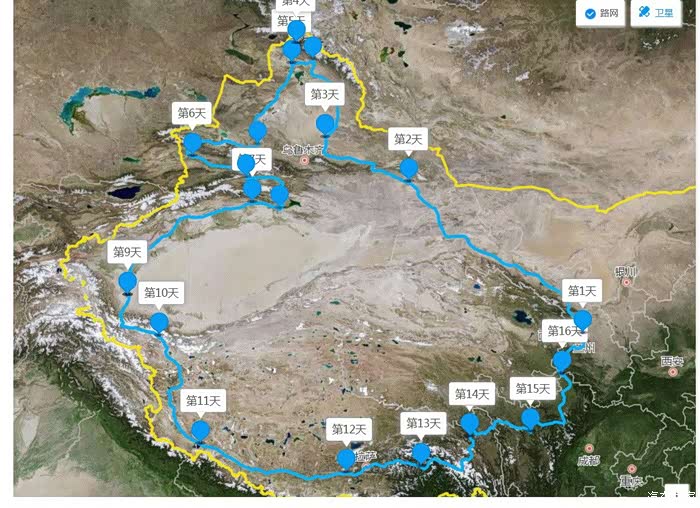 本次穿越的路线大概是:兰州出发,沿G30连霍高速前往新疆,到达乌鲁木齐后转向北,抵阿勒泰,前往著名的喀纳斯景区,然后一路南下再汇入G30到达终点霍尔果斯口岸,再折返往伊犁,过独库公路、巴音布鲁克抵达库尔勒,再折向西直到尽头——喀什,然后到达新藏线G219起点叶城,完成新藏线G219全程2140公里穿越后过拉孜、日喀则到达拉萨,沿G318过林芝、八宿到达邦达镇后离开G318,转向北往昌都市上G317,过江达、德格、炉霍、马尔康、红原、若尔盖后进入我大甘肃境内,过碌曲,合作、临夏回到兰州,行程大约11000公里,历时15天半!怎么样?神人吧?哈哈!其实我秉承的理念在去年的帖子里多次提及,那就是最美的风景在路上,加之时间确实有限,都是挤出来的,所以我多以穿越、飞奔之类的词,而少有旅游、游玩、游记之类的表述。明眼人看完帖子都知道,这哪是旅游,这就是穿越!!少有我这么干的……