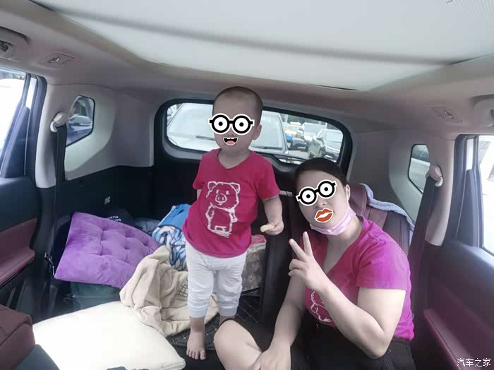 出远门,我们习惯把后排全放平,小孩和大人都可以在后排躺着休息,养精蓄睿。