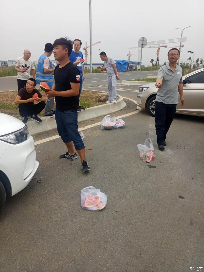 俗称微笑曹的曹哥招呼我过去吃西瓜呢,感谢曹哥,感谢车友们