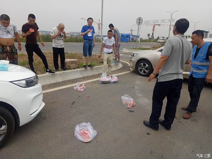拍完一个阵型了,中途休息之余,给力的车友还为我们准备了甜甜的西瓜解渴,感谢车友!