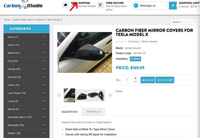 声称包邮,名称写清楚了是Model X用的,而且是Free shipping,我还以为会是国际物流发过来很慢,没想到没几天就收到了,兴致冲冲的结果悲剧了。