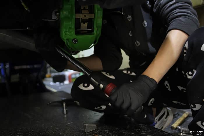 安装过程没怎么拍,此物是扭力扳手,刹车和悬挂上的每颗螺丝都有它对应的扭力。技工说:蛮力=慢性死亡