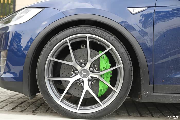 。往下写下去我也不知道会漏掉什么,只能尽量去写全了。Tesla并没有什么可以改的东西,外观和操控=22寸锻造轮毂(因为Model X自重要高于一般的家用车,所以轮毂在强度的设计方面必须要达到800KG以上的载荷才能应对各种情况),所以购车订单上是20寸的标配轮毂。刹车性能=碳陶前轮刹车+后轮Brembo GT,偶尔想要激烈驾驶时,会关闭刹车能量回收,找寻更加线性的制动效果。更宽更薄的PSS轮胎带来操控的提升巨大,抓地力堪称无敌。不过胎噪并没有减小,看来x的底盘隔音几乎为0,纯粹为了电池散热让步了。