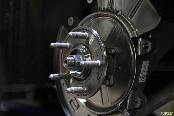 如此图,电子手刹完美放入。推杆的限度并不是很大,看来Brembo设计这个29mm的刹车盘也是最大限度的兼顾电子手刹的保留了,我看一般brembo的刹车盘都是30mm以上的厚度的。不过特斯拉是电动车,并没有档位,电子手刹肯定不可能取消掉的。