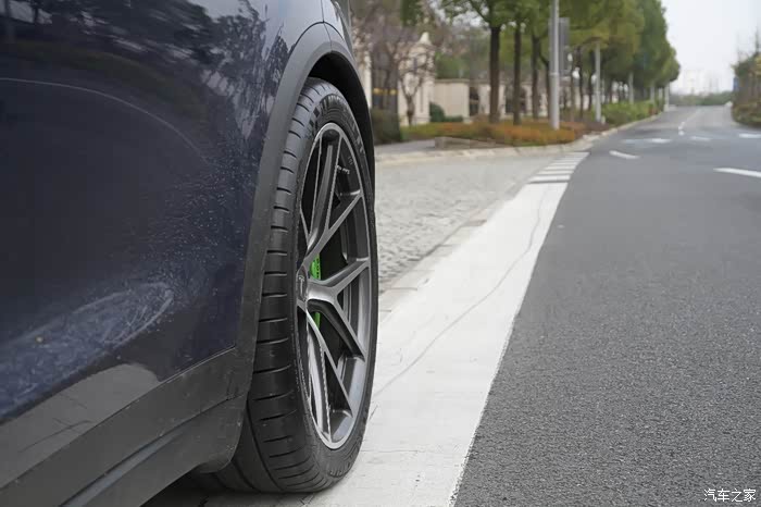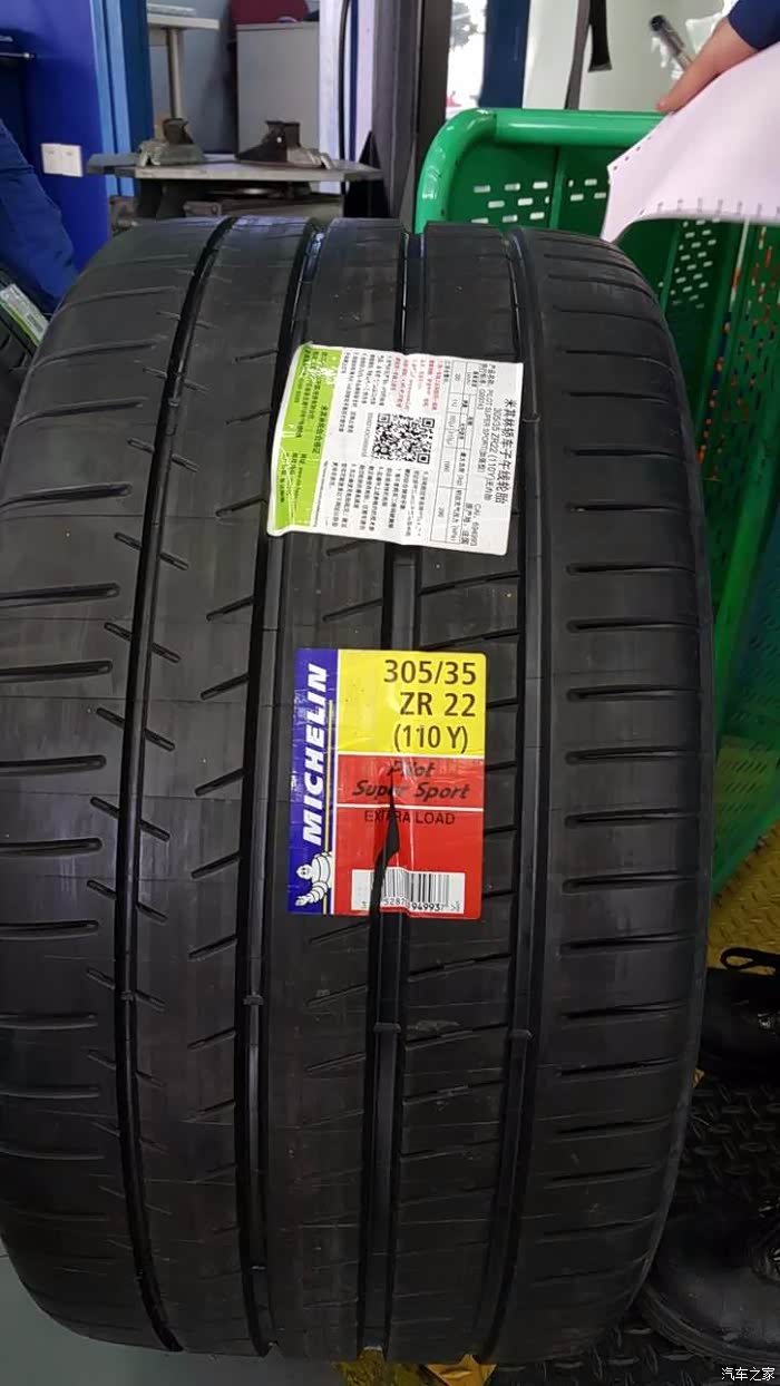 综合胎噪、性能所以轮胎选用的是米其林的PSS。265/35/22 305/30/22这个数据的PSS全国稀少,找到也是大费周章。265是在米其林大仓找到的唯一两条,305是在一家轮胎供应商手中拿到的水货。感觉能找齐这四条轮胎,已经是要运气爆棚了。在此之前挨家挨户问,差点准备自己去国外买回来了。。