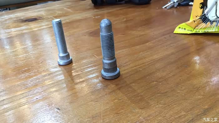 本来想换轻量化的锻造螺丝的,顺便改一下颜色搭配轮毂,但是欧美的车一般用的螺丝都是14X1.5的,想用常规型号的轻量化螺丝,就得把这5颗螺杆换掉。