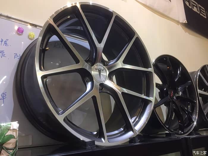 轮毂的选择是参照此图,HRE的P101款式。造型比较常规,不过HRE一方面太贵,两一方面就是货期比较长。所以选择了一家国内的锻造轮毂厂商,并且也知道他们是做轮毂出口的。Model X的自重决定了它不可能去使用和市面上其他轿车、SUV一样的轮毂,而是一定要经过特殊的工艺提高轮毂的强度才可以。800KG以上的荷载强度才能保证在日常的使用中不会轻易的变形。