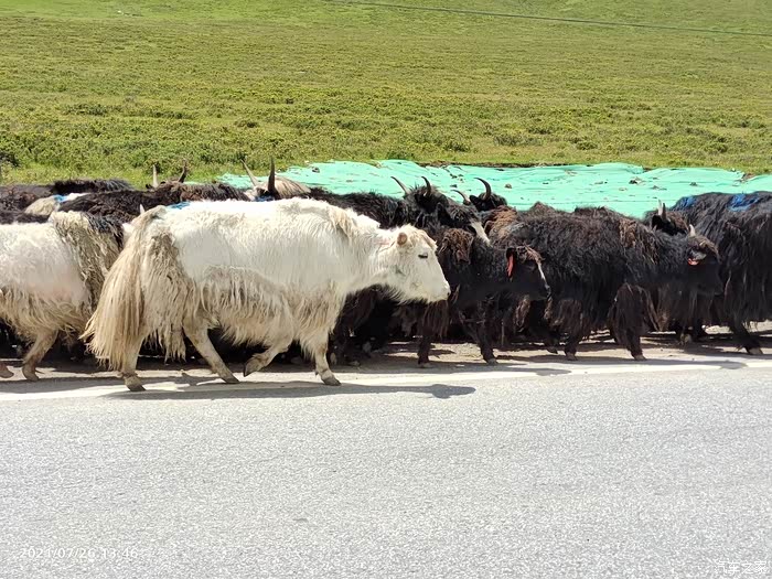 山羊和牦牛是高原的主人,他们随心所欲,非常可爱。接近大冬树垭口时,有了柏油路,但过了垭口又是长长的泥坑路,而且更难走。