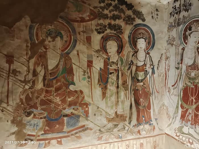壁画随处可见,但破损严重,这里有很多故事。比如,晋朝一位女子写给丈夫的情书就在附近的窟洞里被发现,但是被一位英国盗墓者给偷运到了大英博物馆,同时还有大量经书被运走了。
