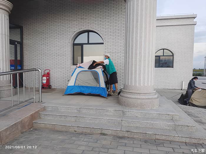 从新疆出来的驴友,在服务区搭帐篷,旁边是北京的一家。我们预定的98元一晚的民宿,就在巴彦淖尔市内。