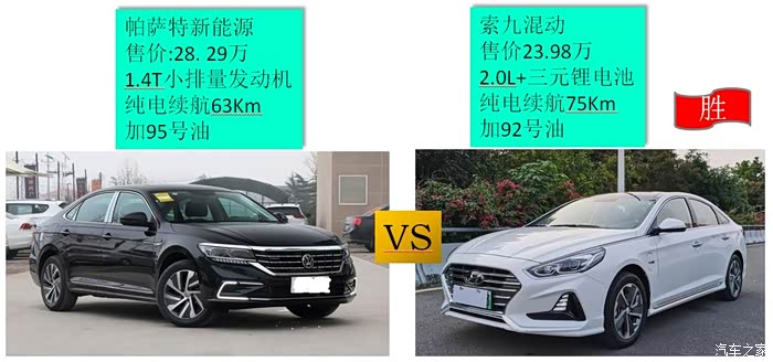为了公平起见我性选择了同级别的帕萨特新能源进行了对比,发现索九混动的优势还是很明显,售价更低,纯电续航更长,动力更充沛