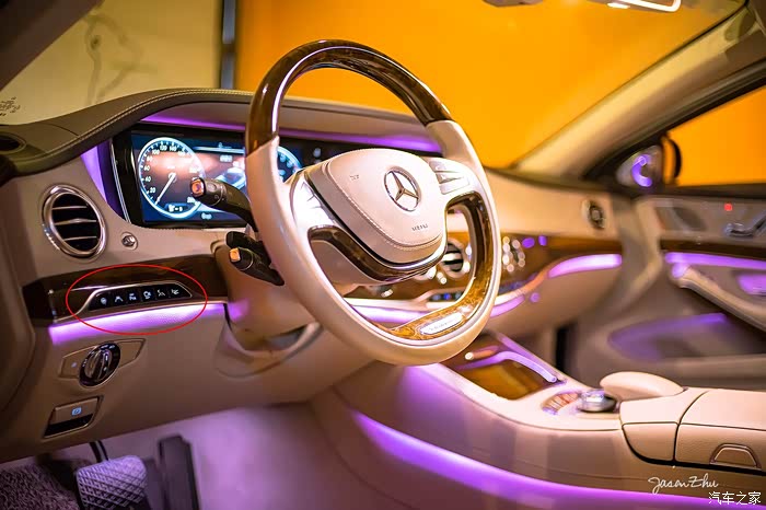 浅内加环境光,优雅极了,要不为这个内饰,我也不买 它,其实W221的S350才开了几万公里,完全没有旧呢