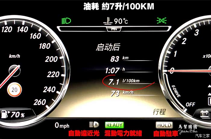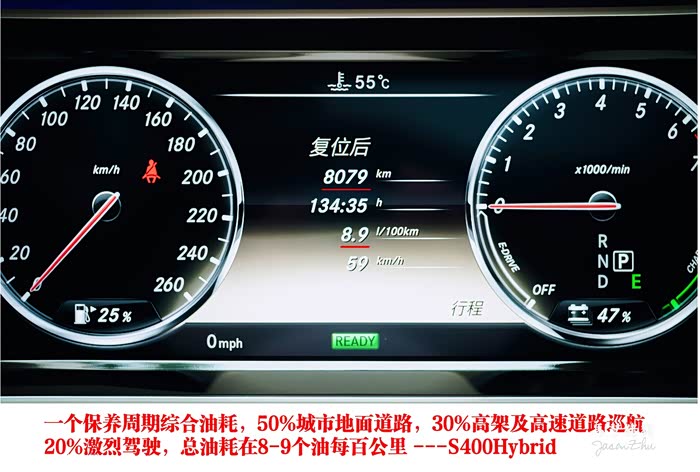 另外Hybrid不是为了更省油为主的,虽然说开S级不太关心油价,但几天去加次油也烦吧,更重要的是,一种社会责任感,一个是更放心可以激烈驾驶,没错 S400Hybrid比迈巴赫S400还贵几万,但平时即使堵车,也不过8个油,一个保养里程的综合油耗不到9个油,油耗我们后面细说。